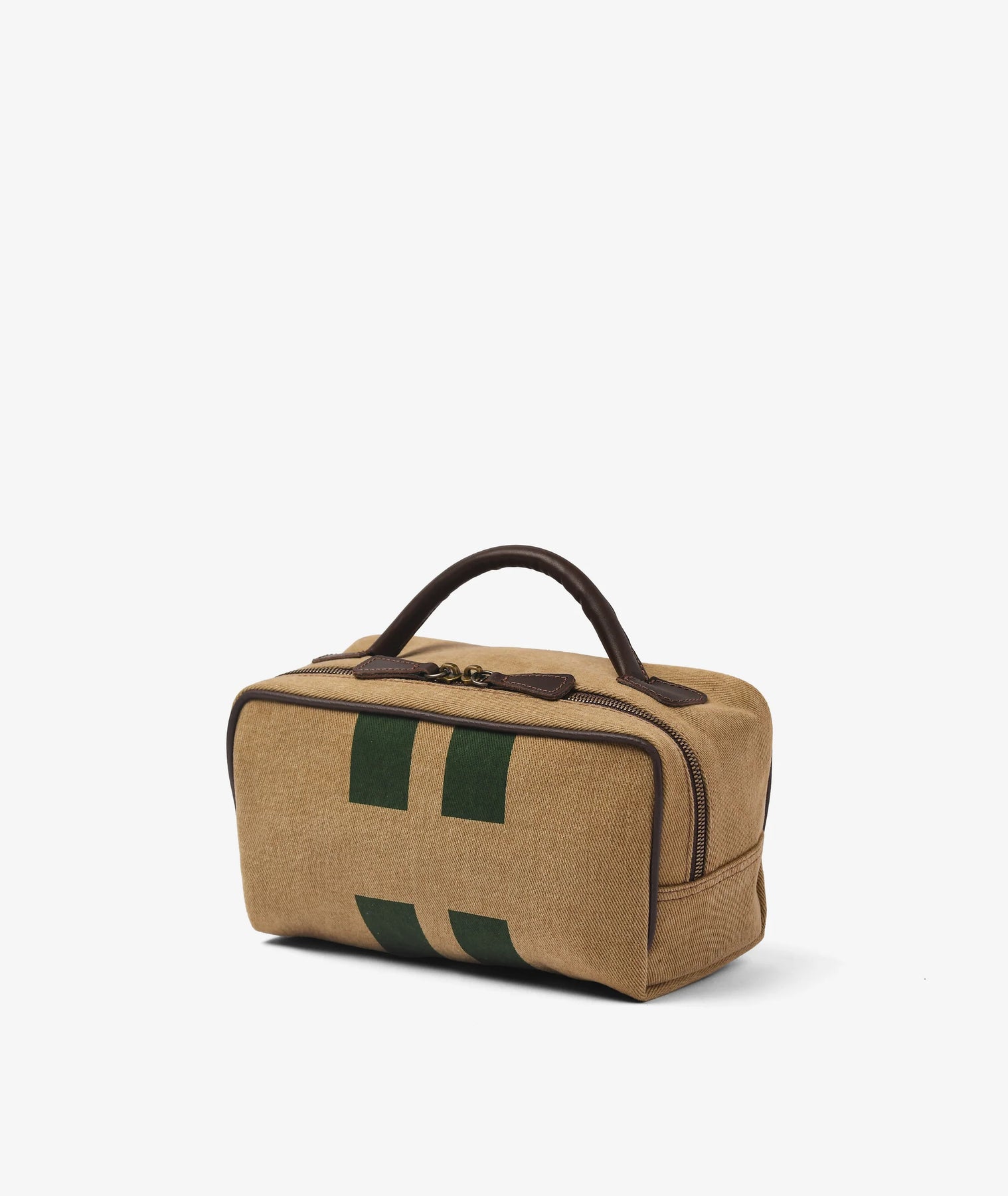 Compact but roomy, customizable with your initials, the College beauty case in beige suede and green details is the ™perfect ally for any adventure.