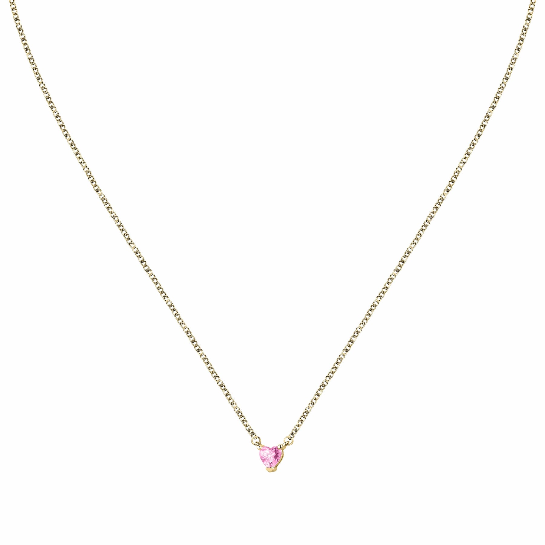 Glamorous jewellery pieces with a flair for attractive and showy designs highlight the ethos of this collection. Italian perfection in a trendy collection. Featuring a glittering pink fairytale heart stone on a gold chain, this necklace is perfect as a gift, or to complement an array of outfits.