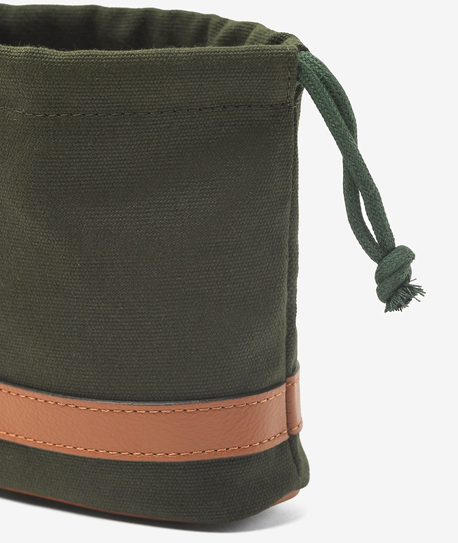The Golf Edition Ball Holder in Forest Green is a reference to nature and the tradition of golf. The combination of canvas dark green and tan-colored leather details evokes the atmosphere of the ™most exclusive courts, with an ™aesthetic that speaks of class without ostentation.